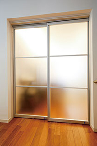 リビングとダイニングキッチンの間には、フルオープンのスライドドアを設けました。ご夫婦の趣味である映画鑑賞をする際や、来客時にキッチンを見せたくない時などに活躍します。冷暖房費の節約にもなるとか。