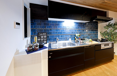 タカラスタンダードのオフェリアを採用。汚れにくくキズや熱にも強い高品質ホーロー。ステンレスのシンクは大きな鍋も洗えるワイドタイプ、キャビネットはスライド式と、高機能キッチンです。
