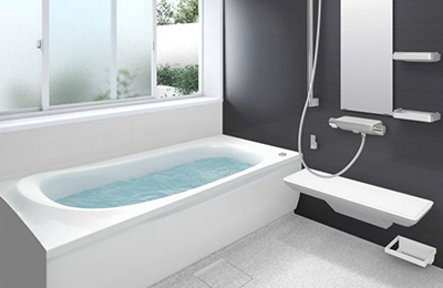 TOTOのサザナを採用。床は暖かく掃除しやすい「ほっカラリ床」を採用。天井・壁・床の適所に断熱材を施し、冬場も快適に入浴タイムが愉しめる高機能バスルーム。