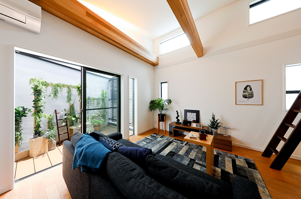 コロニアルグラッサを採用。表層に紫外線に強いコーティングを使用し、色あせしにくく汚れが付きにくい屋根。また地震時の揺れを軽減するため、軽量設計。
