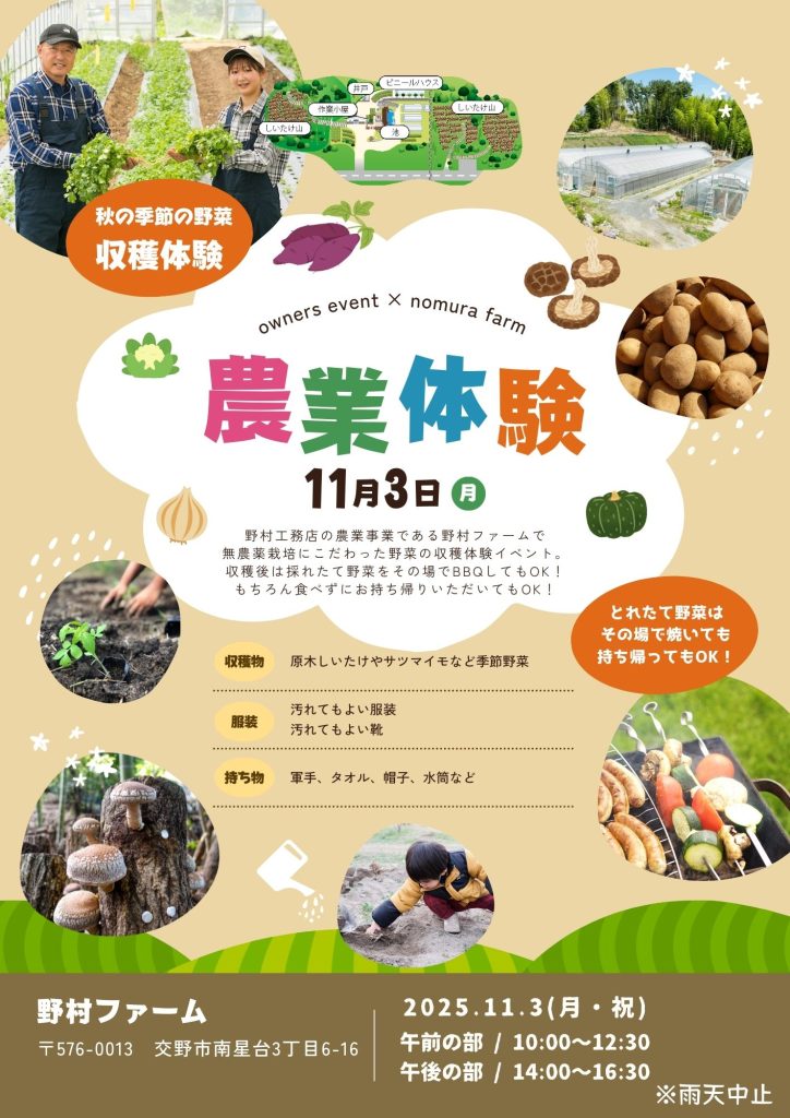 野村工務店では11月3日(月・祝)に「野村ファーム・農業体験」イベントを開催いたしました!