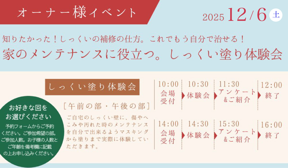 2025年12月オーナー様限定!イベント「しっくい塗り体験」 2025年 10月 20日