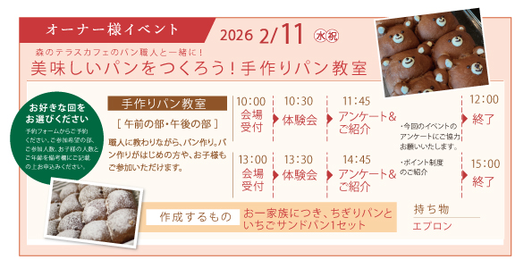 2026年2月オーナー様イベント「チョコパン作り教室」/12月22日予約スタート 2025年 12月 20日