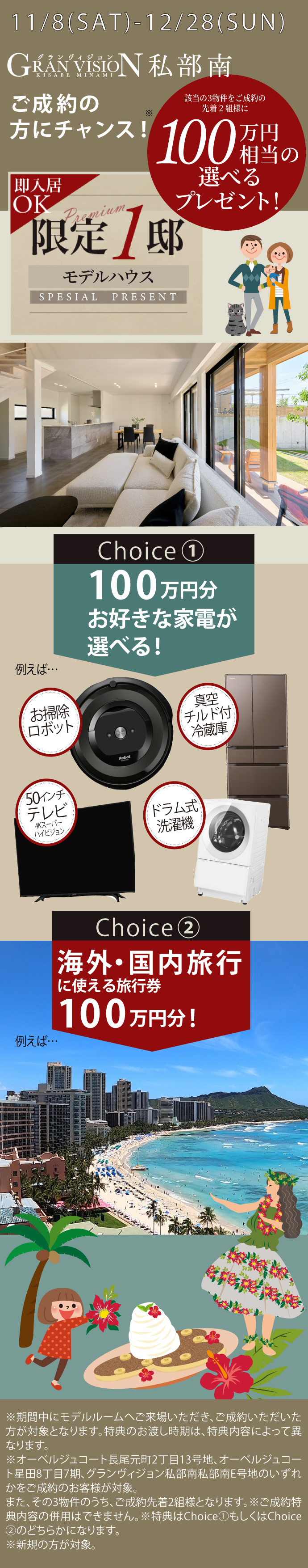 11/7 明日からスタート!5物件限定の豪華な即入居キャンペーンで、100万円プレゼント!(12月末まで)