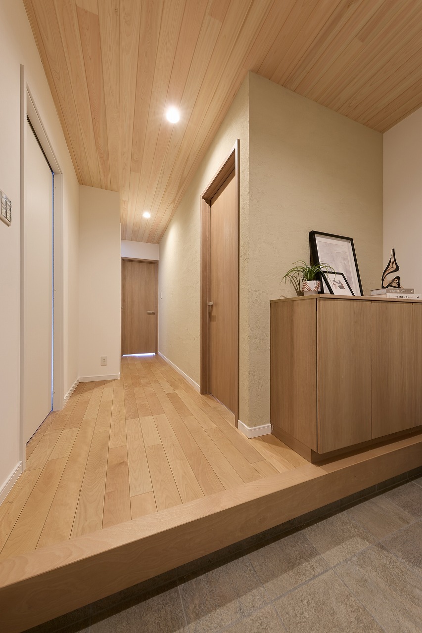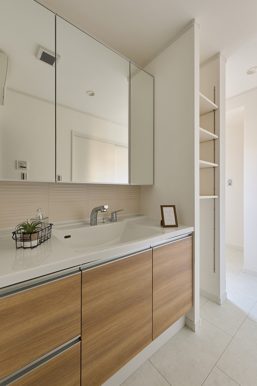 見落としがちだけど、これはとっても重要。車のすれ違いがスムーズなだけでなく、道路の反対側のお家と距離が十分にあるのもプライベート性が上がって快適。さらに道路側からの採光通風がしっかり確保されていて心地よさも抜群です。