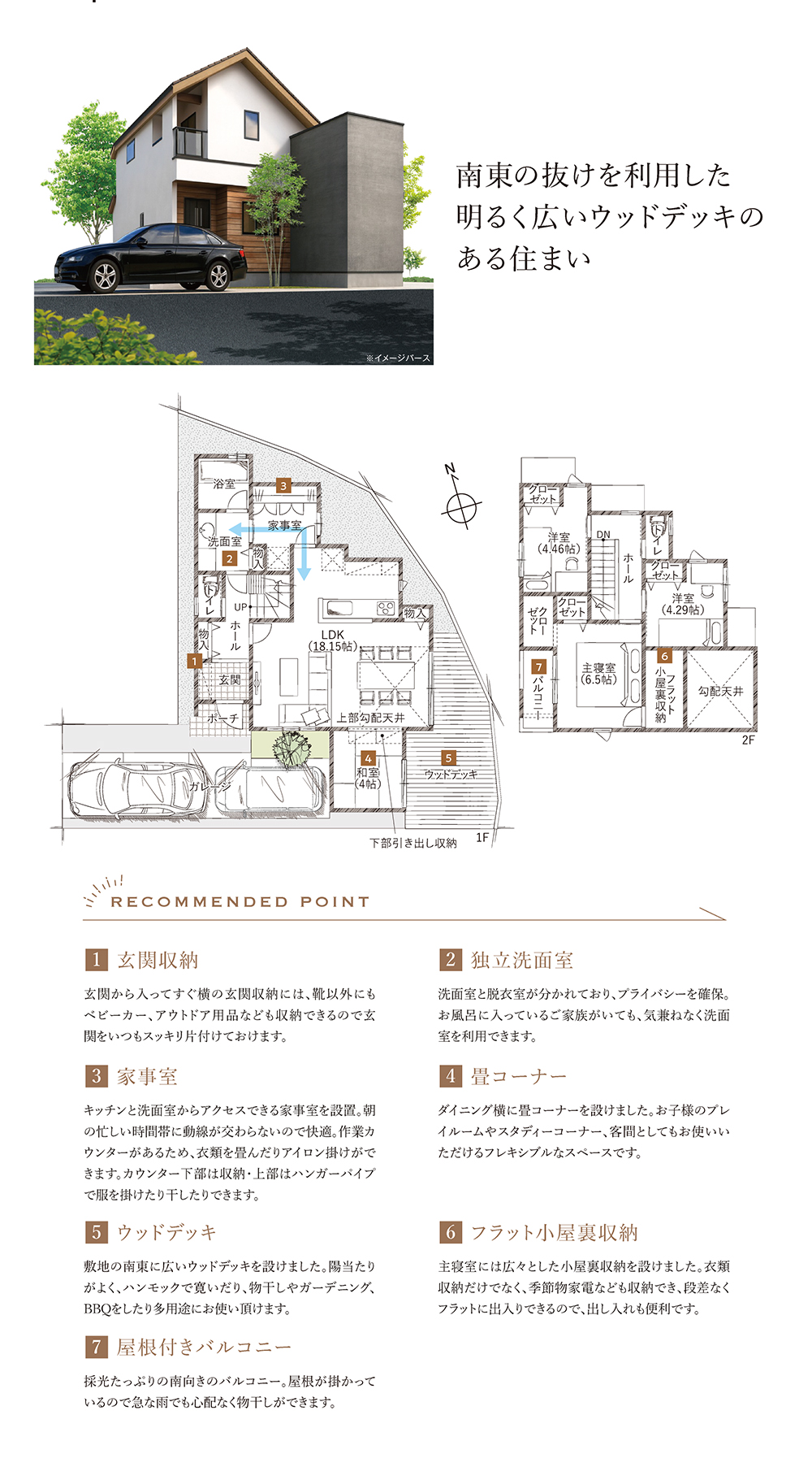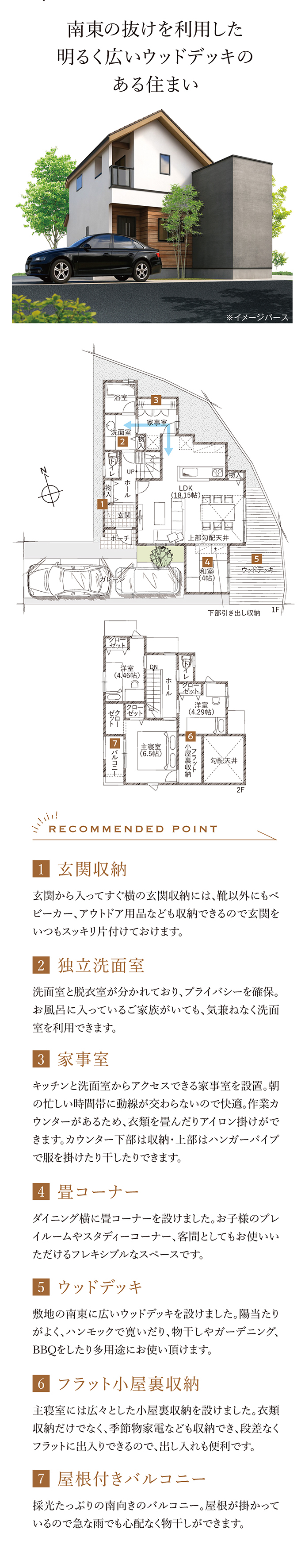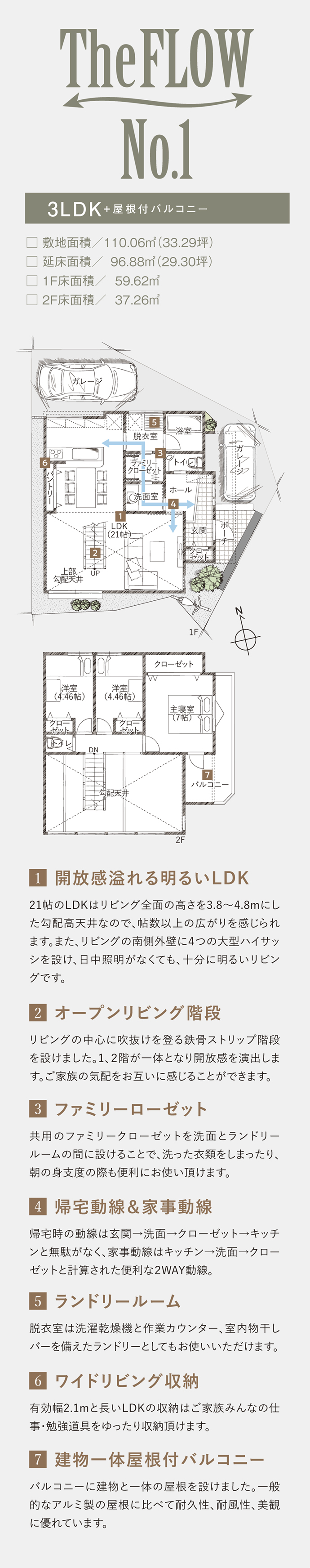 - 延床面積 車庫を含む場合は※自動車車庫面積○○㎡含むと記載