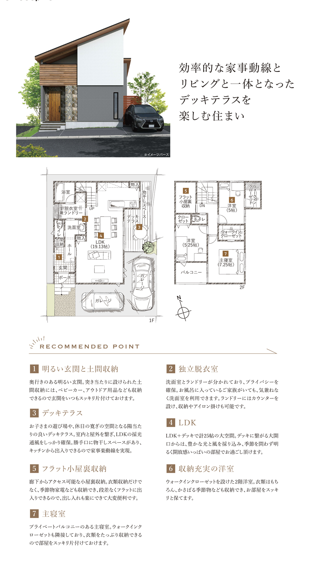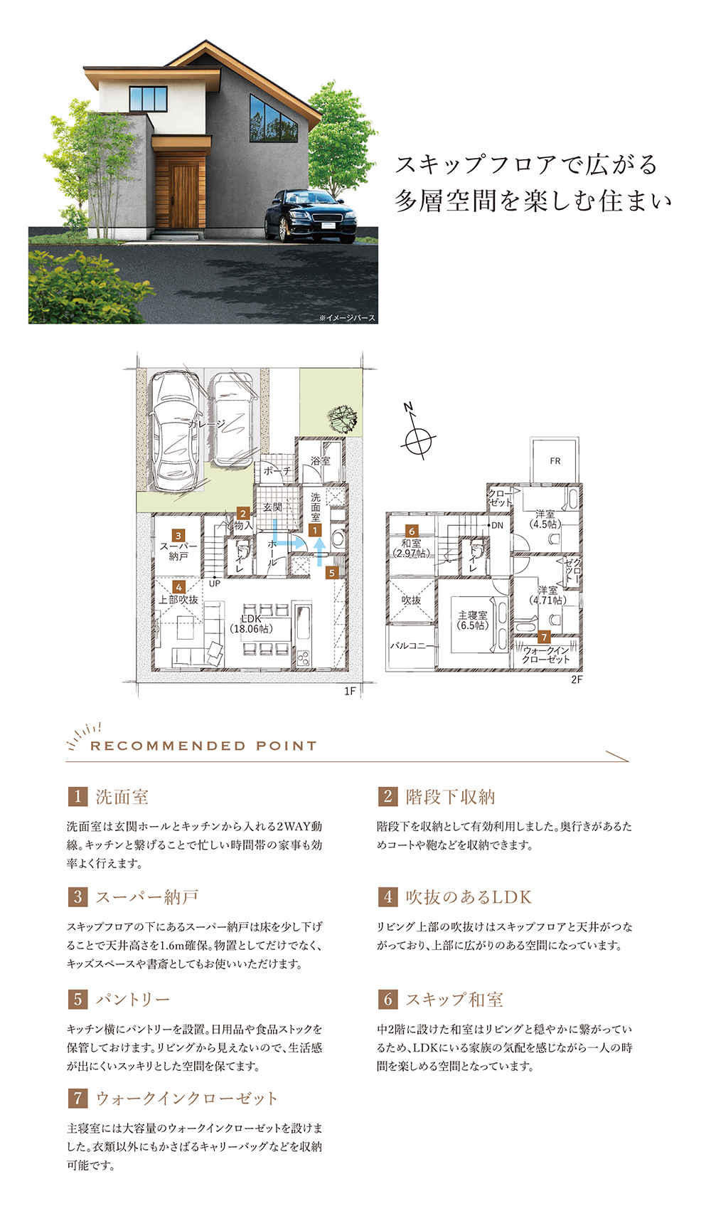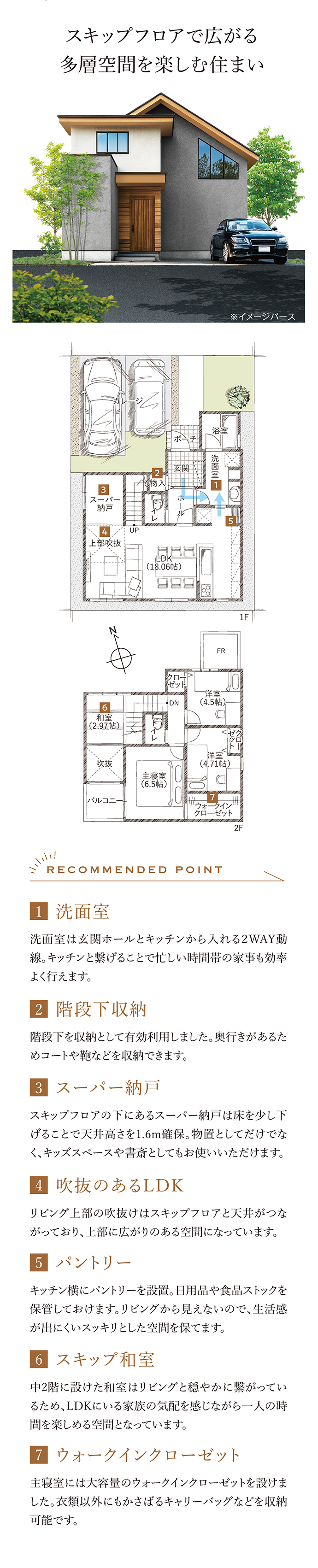 - 延床面積 車庫を含む場合は※自動車車庫面積○○㎡含むと記載