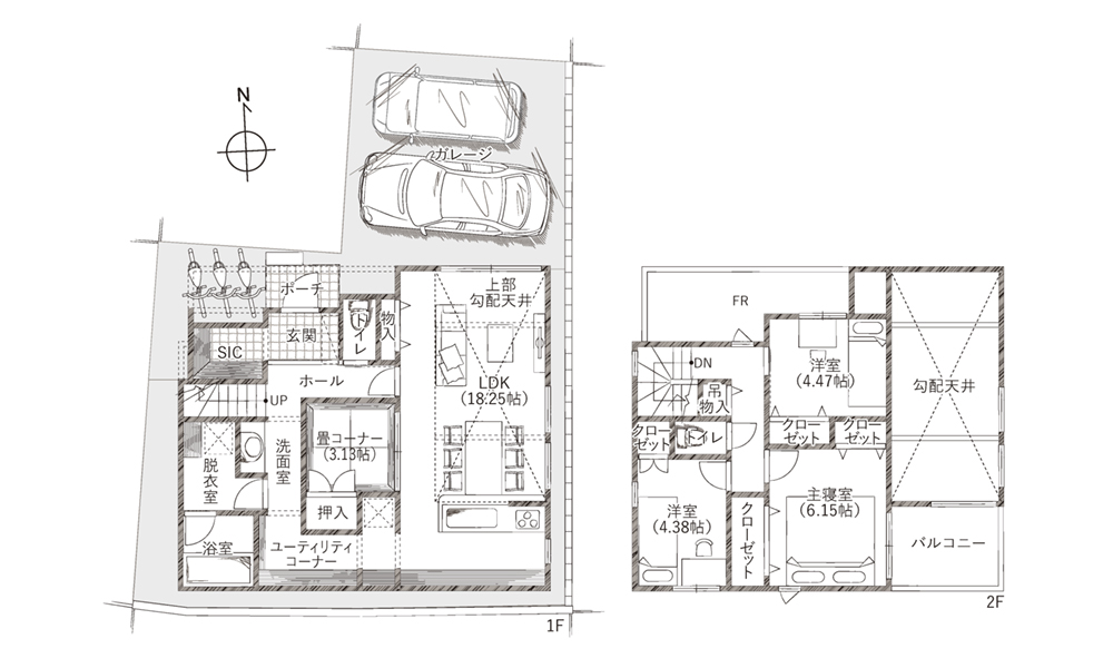 - 北側(公道)9.25m / 分譲地内道路5.00m