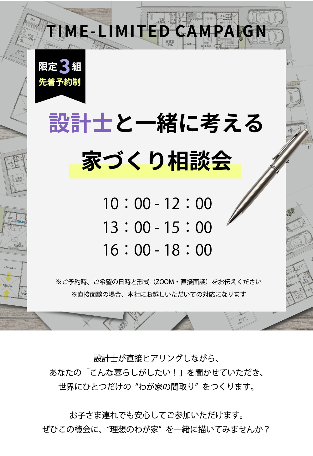 自社の設計士、IC各1名がお客様に専属対応。家具配置やそれに伴う照明やコンセントの位置など、細部まで配慮して設計しています。50年以上の分譲経験と、自社施工のお客様からの声や施工時のご要望などを活かし、より実際の暮らしを考えたプランづくりを心掛けています。
