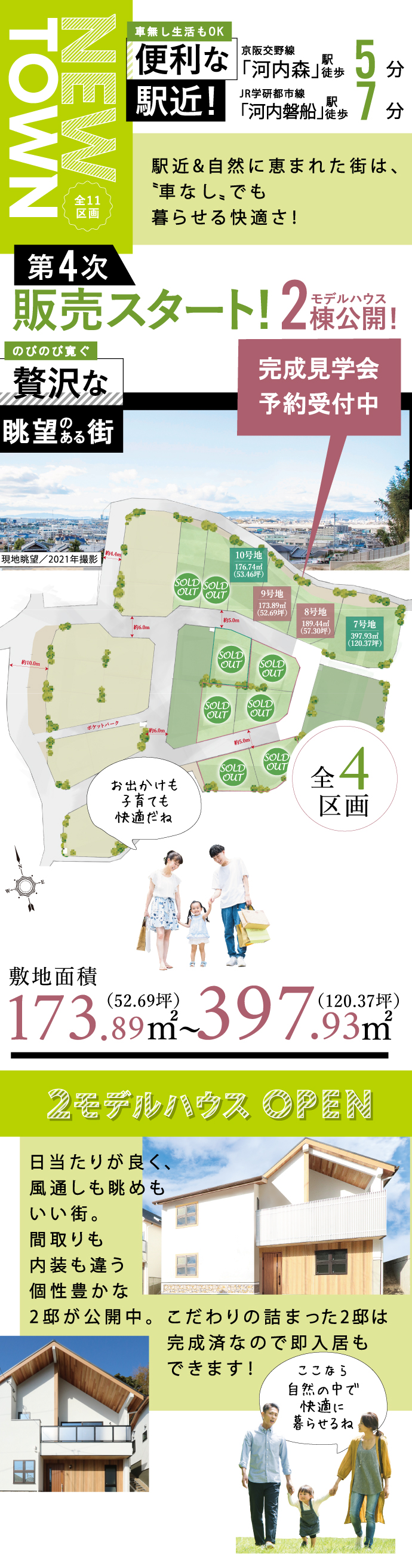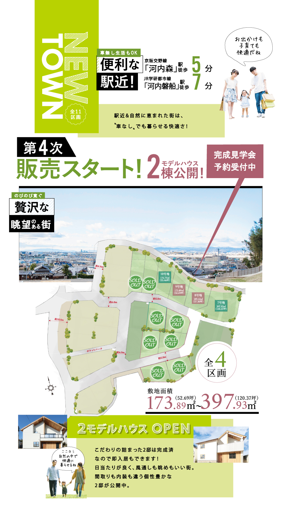 大阪の都心部へ電車で約30分直結。最寄駅「河内森」駅へ徒歩5~6分、