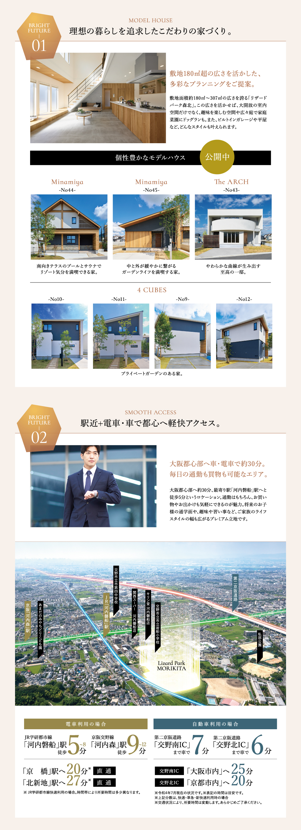 - JR学研都市線「河内磐船」駅徒歩5分~8分、京阪交野線「河内森」駅徒歩9分~12分