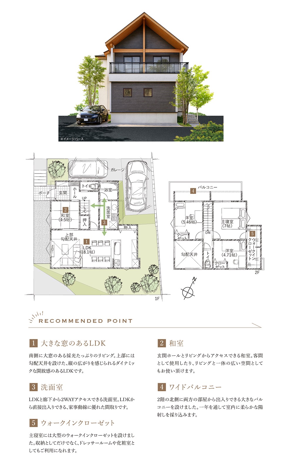 ■敷地面積/146.03㎡※(150.01㎡) ■延床面積/96.46㎡(28.62坪) ●1階/59.41㎡ ●2階/37.05㎡