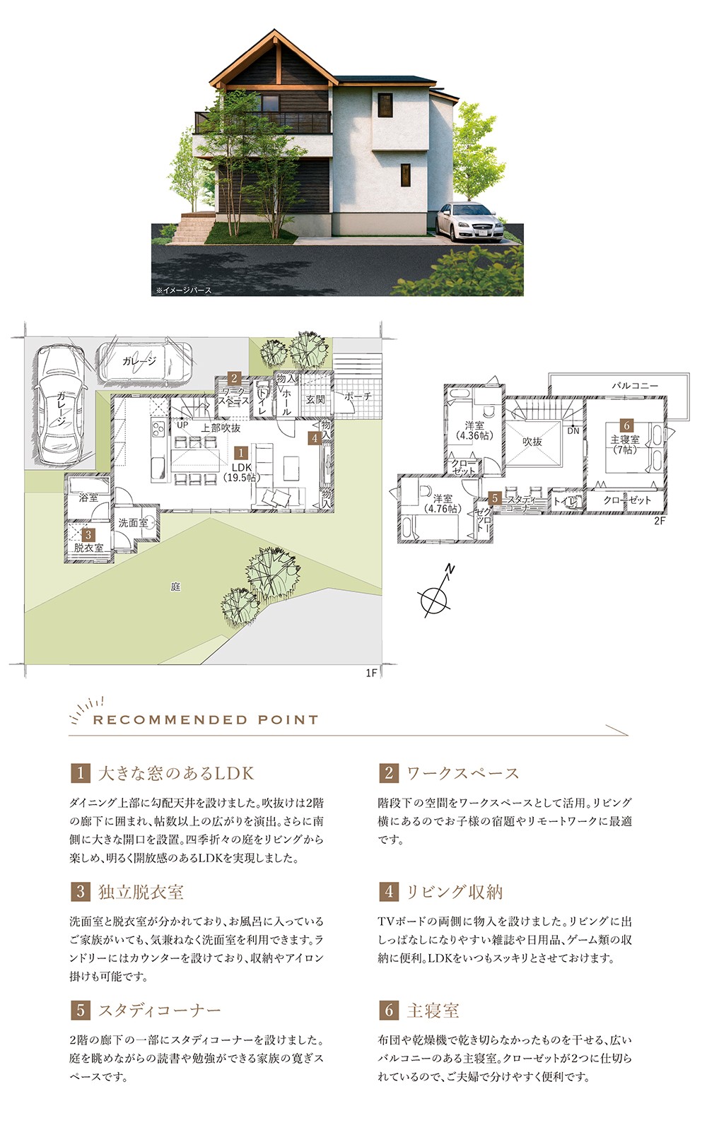 ■敷地面積/122.84㎡※(180.79㎡) ■延床面積/94.64㎡(28.62坪) ●1階/51.65㎡ ●2階/42.99㎡