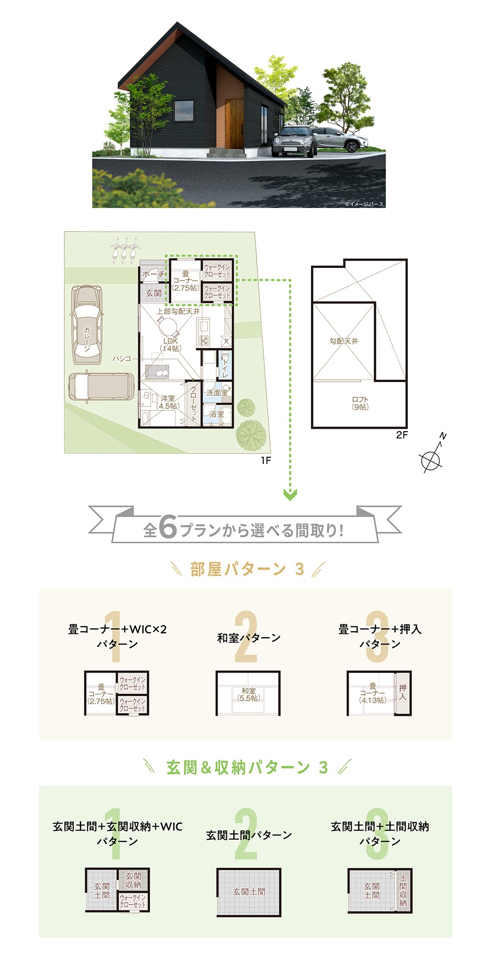 ■敷地面積/146.03㎡※(150.01㎡) ■延床面積/96.46㎡(28.62坪) ●1階/59.41㎡ ●2階/37.05㎡