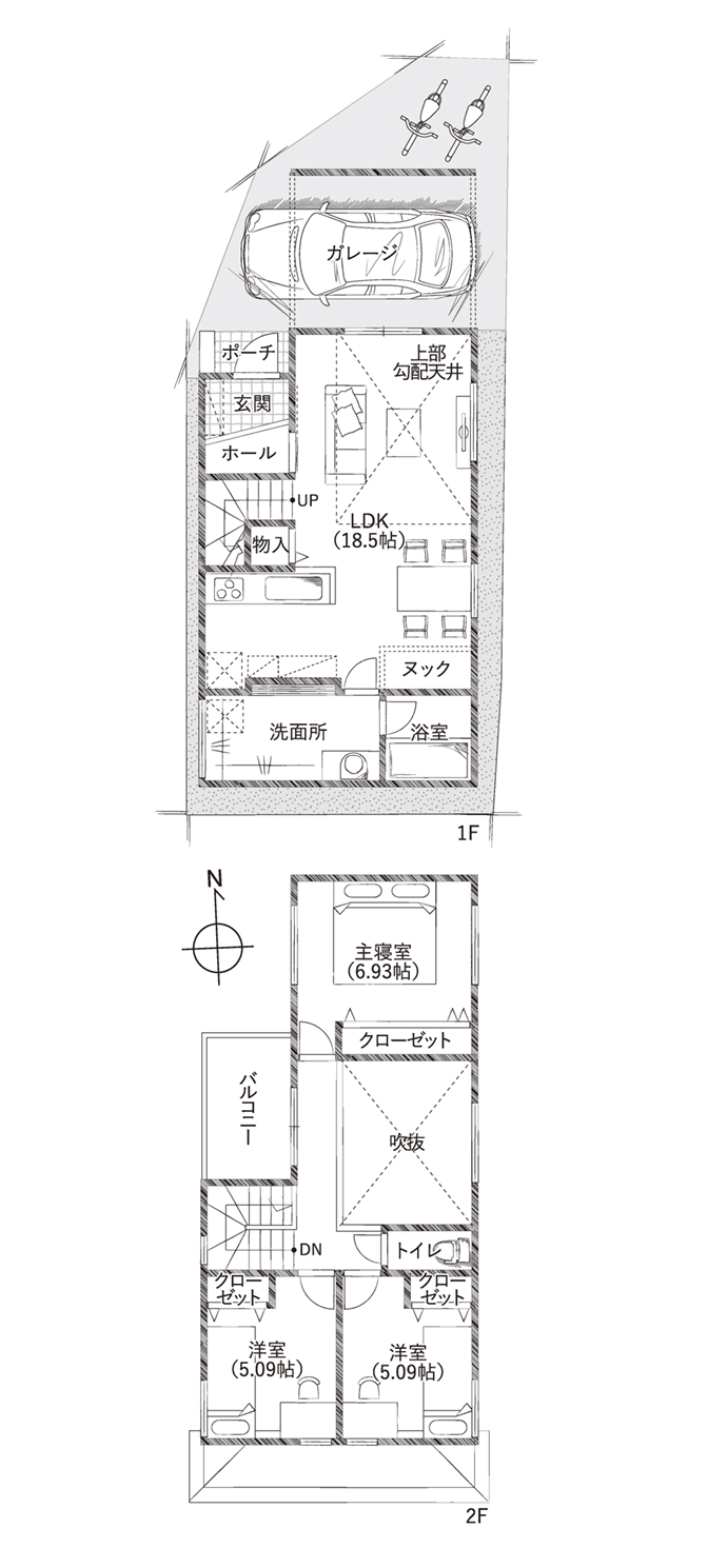 - 延床面積 車庫を含む場合は※自動車車庫面積○○㎡含むと記載