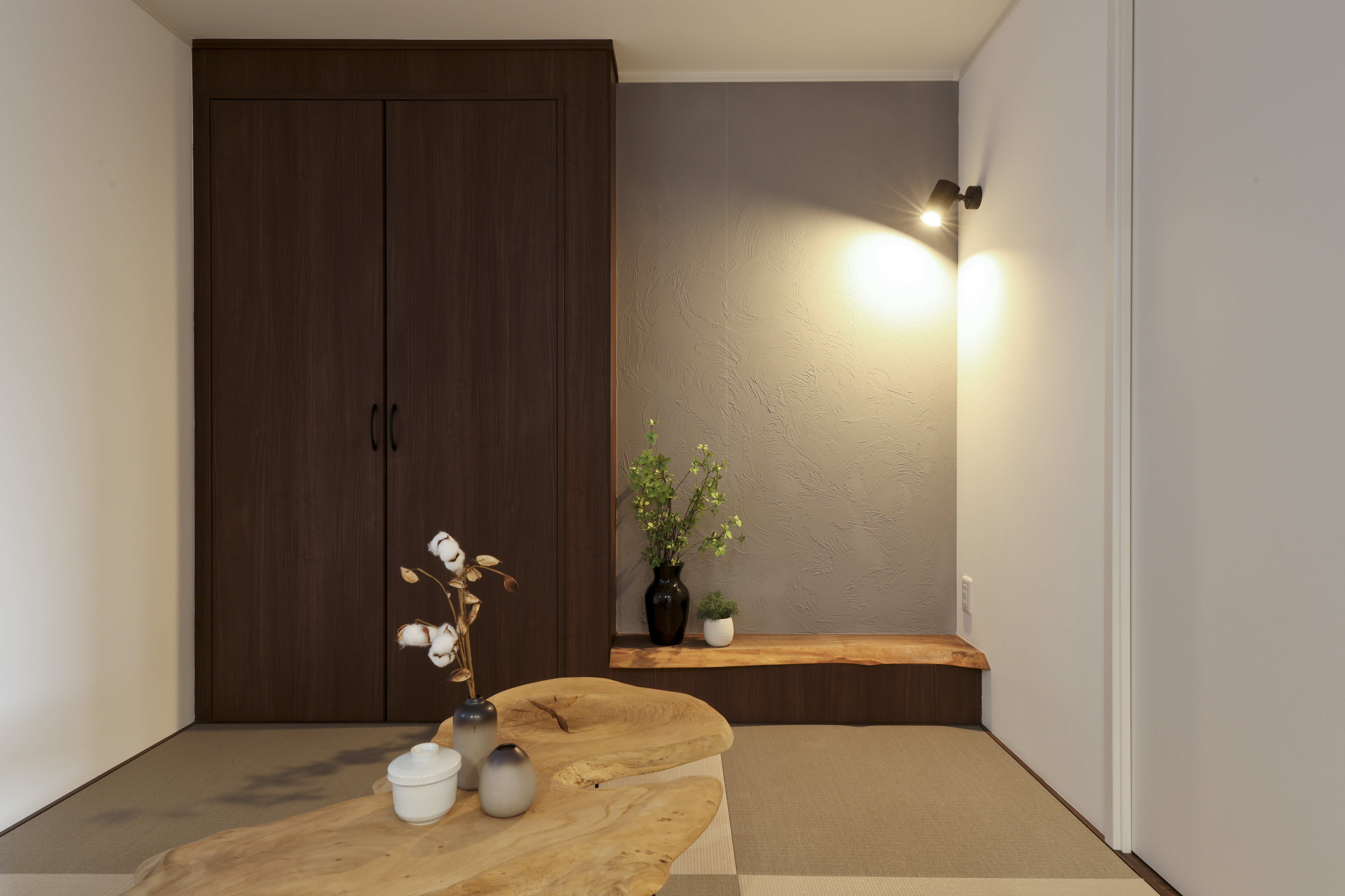 ・落ち着いた雰囲気にするため落ち着いた色味で統一し、リラックスできる空間にしました。