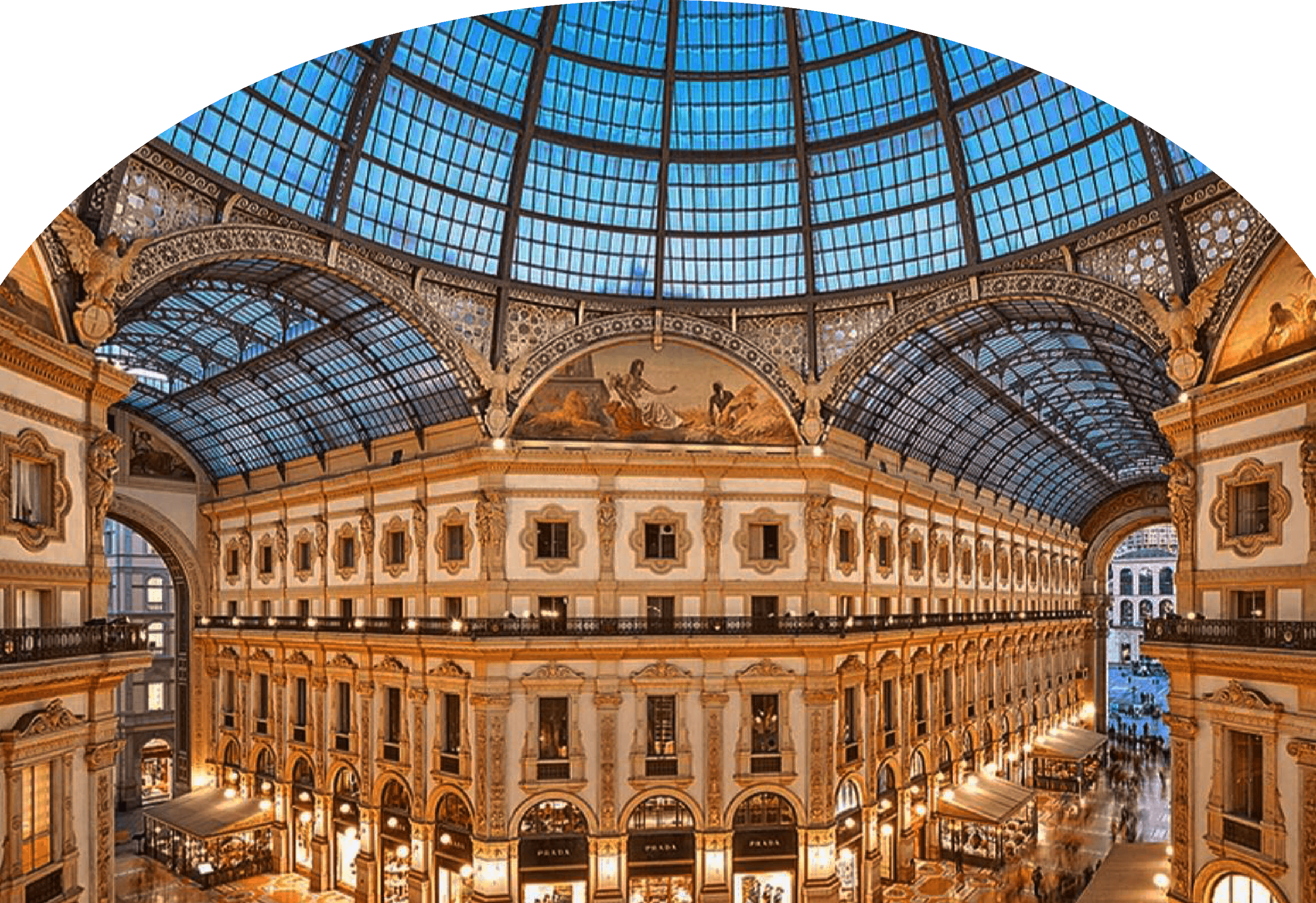 ハイブランドの本店などが立ち並ぶ建物にも大理石を含むしっくいが用いられ美しい景観を生み出しています。
