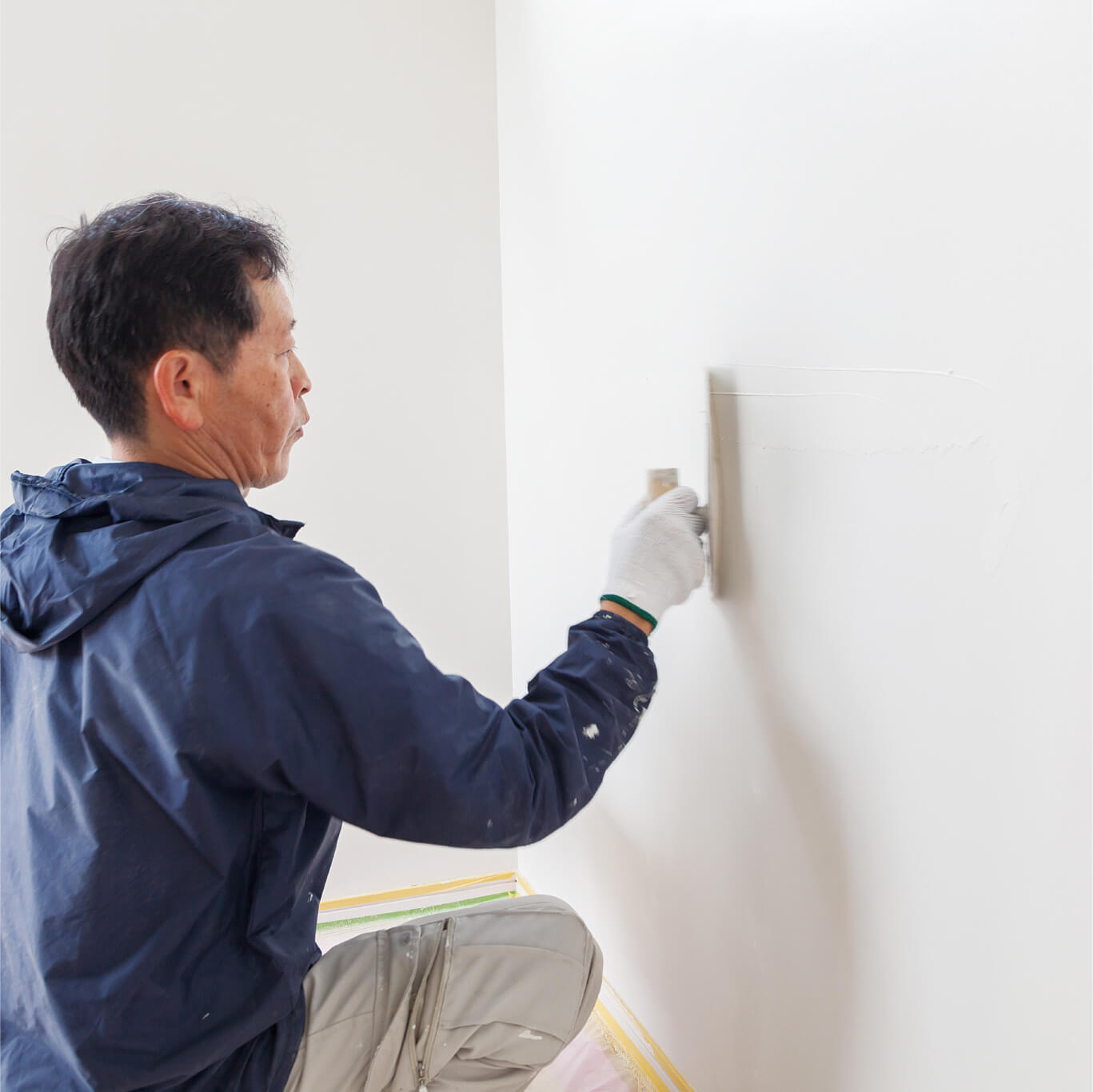 日本の漆喰とは異なり、光の反射による光沢や、コテムラによる陰影の上品な表情を生み出すことができるのが特長です。