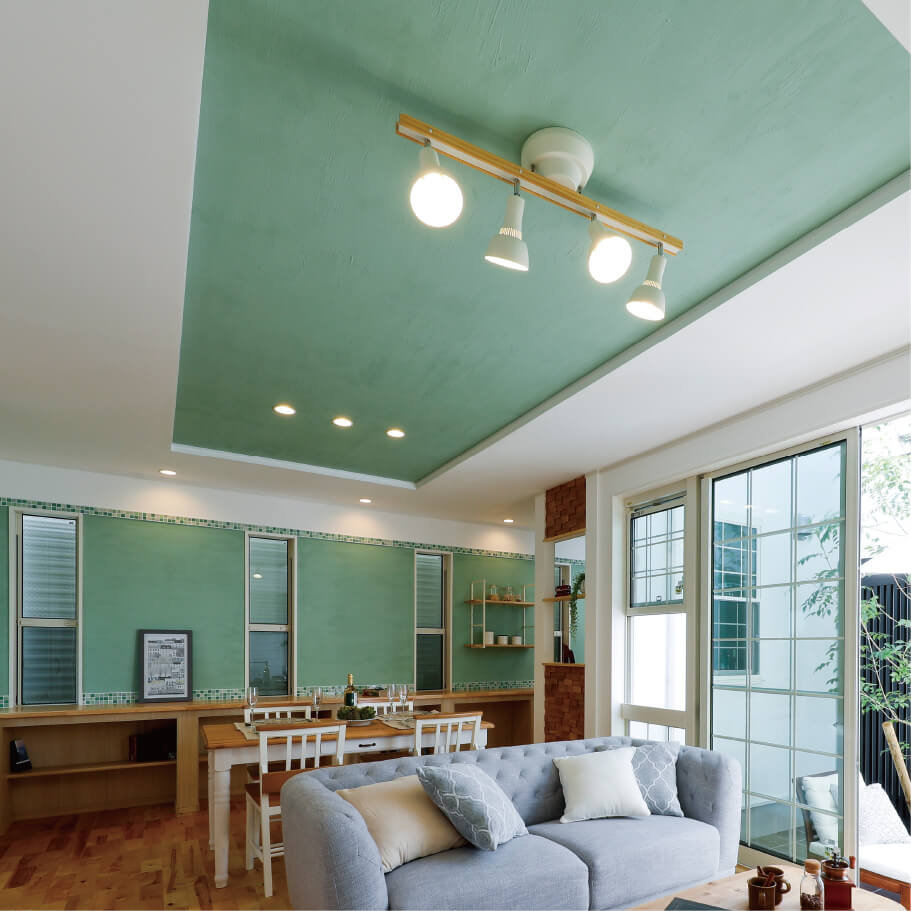 天然の顔料を混ぜることで標準の白色と一味違った風合いのアクセントウォールをお楽しみいただけます。